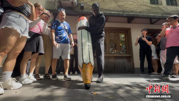 在9月麦克(Mber)12,在上海的街道上,国际互联网名人“无声兄弟”举行了“笔”并认真对待。 Lou Hankun照片