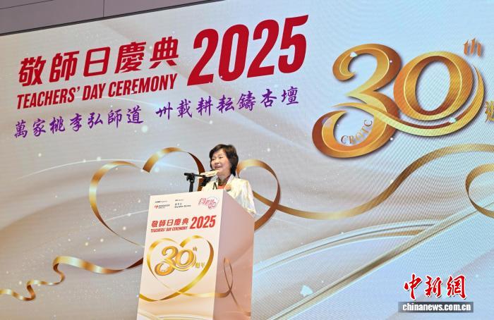 9月26日,香港教师体育委员会庆祝了“ 2025年老师的问候 - 硕士日庆祝活动”。这张照片显示了香港特别行政政府教育办公室主任凯·鲁奥利安(Cai Ruolian)发表了讲话。 (由香港特殊管理区域政府信息局提供的照片)