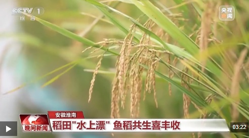 在安徽省淮南市,这片因采煤而被淹没的田地也获得了丰收。每株水稻种植在浮床中,由专业技术人员提前在基盆中添加缓释肥料,持续补充施肥效果。农民们把稻米抬到专门设计的“浮动收割平台”上,用镰刀割穗。水面种植净化了水体,为鱼类生长提供了良好的条件。