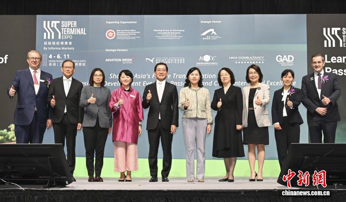 11月4日,Super Hub Expo 2025在香港亚洲国际博览馆开幕。图示嘉宾包括香港特别行政区政府运输及物流署署长陈女士(右五)。 (香港机场管理局提供照片)