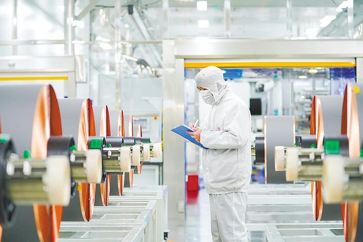 11月19日,工人们在襄阳高新区洛渡新能源低碳产业园电池软包装组装车间检查生产设备。每天有6000只低压锂电池离开这个工业园的生产线。骆驼集团生产的锂电池供应宝马、奔驰、吉利、小鹏等汽车企业,并已获得来自全球110多个国家和地区的订单。 (湖北日报记者 赵一兰 供图)