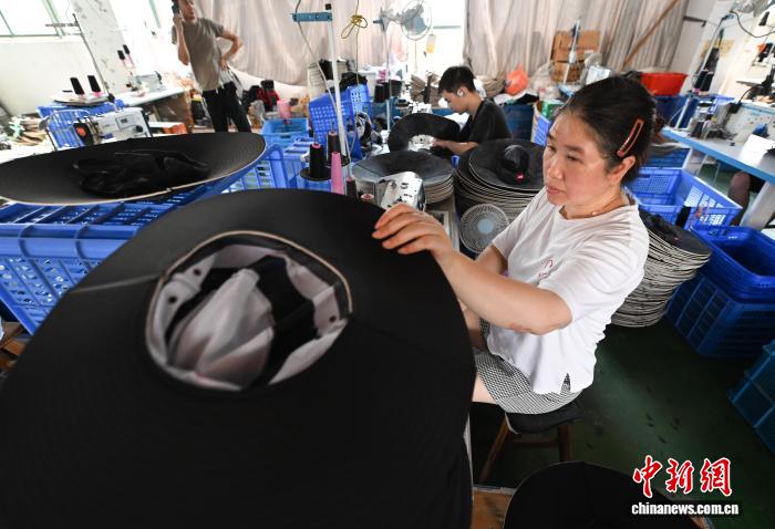 8月21日,工作人员正忙于为粉丝制作帽子。作为Yiwu最近制作的太阳能风扇帽子,Zhijiang已成为流行和受欢迎的外国人,并已成为当地的冷却工具。目前,Yiwu生产公司专注于生产和供应市场的需求。中国新闻服务记者摄影记者王帮的摄影