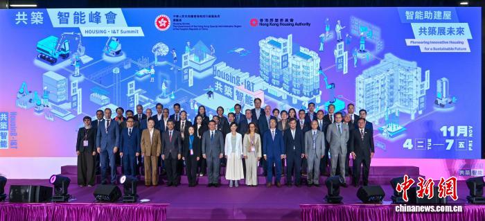 11月4日,由香港特别行政区政府房屋委员会、香港房屋委员会主办的“智慧共建峰会”在香港开幕。图为嘉宾合影。 (香港特别行政区政府新闻处提供)